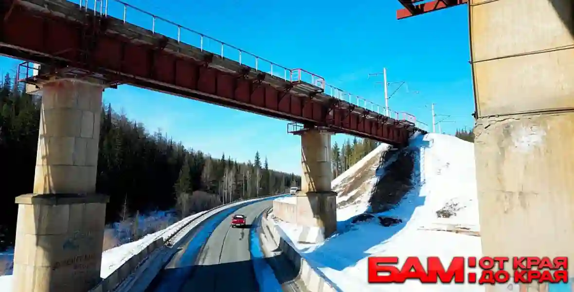 Мост проходит через реку Витим. Он был возведён в 80-е годы для строительства основных путей БАМа и всегда числился как временное сооружение, но ничего не бывает более постоянным, чем временное. Этот мост так и стоит, а нового автомобильного не построили. Его ширина практически равна ширине автомобиля, длина 570 метров, а высота над водой 15. В 2016 году проезд по нему был запрещен властями, а в 2018 одну из его опор снесло ледоходом, однако люди продолжают его использовать. Мост находится в плохом состоянии, с отработавшими железнодорожными шпалами, отсутствием перил и местами – с пустотами над рекой. Не знаю даже, случались ли тут смертельные случаи или нет.