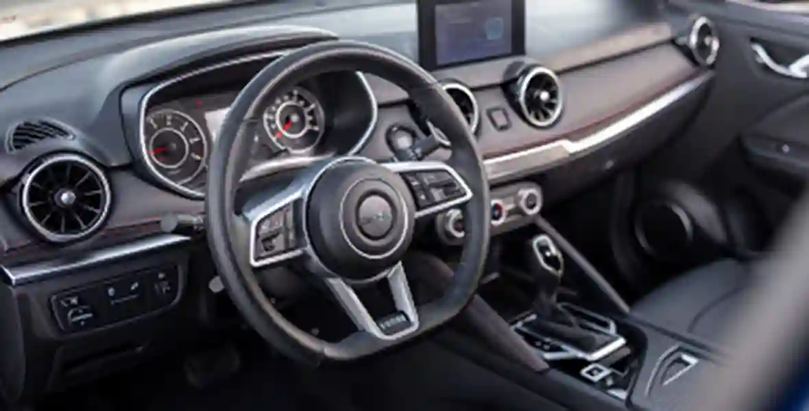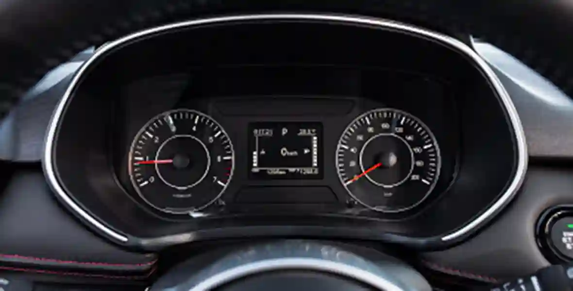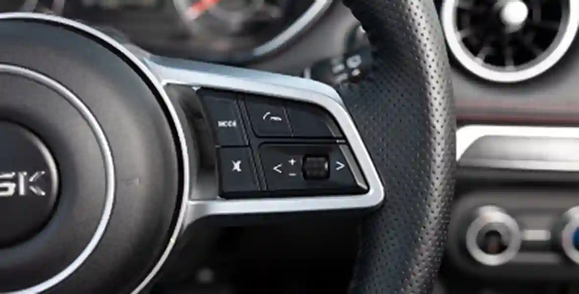 Руль регулируется исключительно по вертикали, но ход явно недостаточный. Пластик торпедо подчеркнуто твёрдый, как когда-то у Lifan, есть риск, что со временем начнёт скрипеть. «Приборка» аналоговая, чем-то напомнила Suzuki SX4. Цифрового варианта, как, например, у Evolute i-Joy, нет в принципе.
